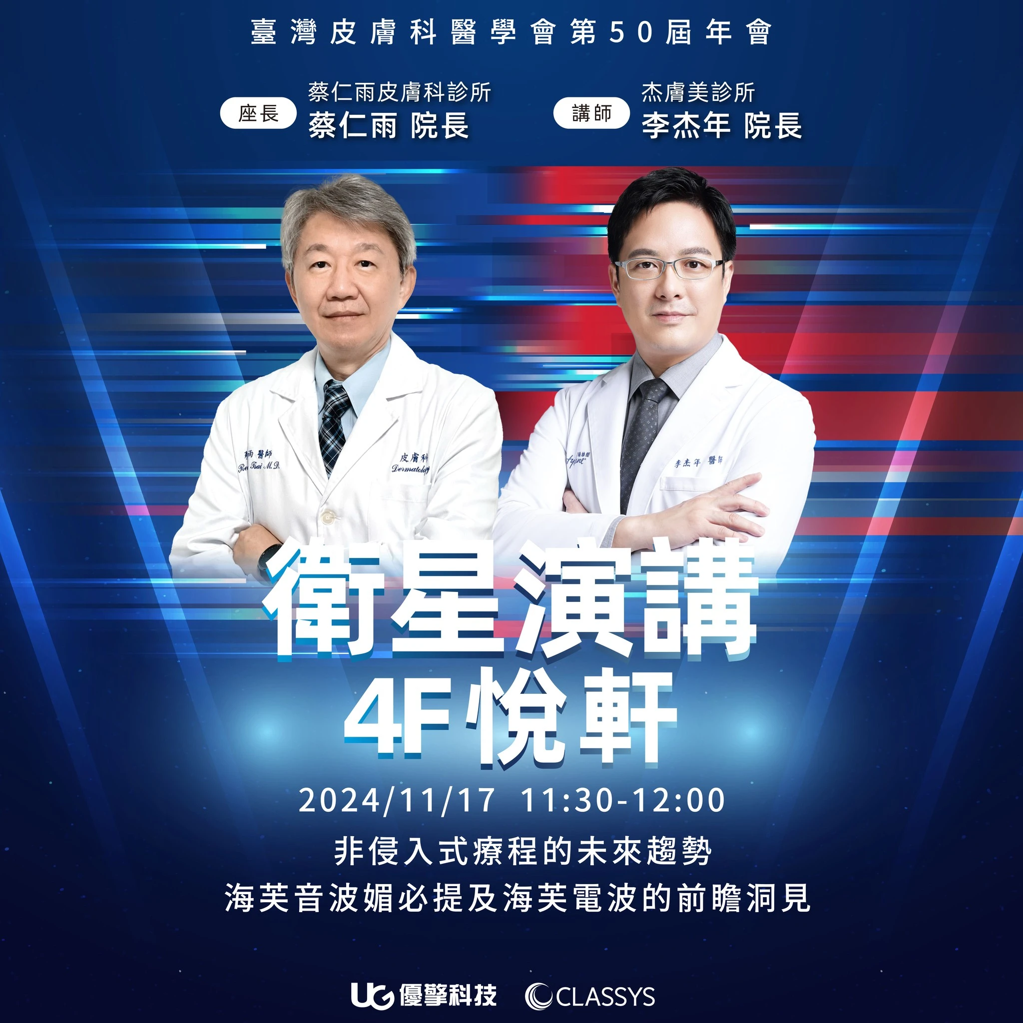 在本次衛星演講中,我們榮幸邀請到 蔡仁雨皮膚診所 蔡仁雨 院長 擔任座長,並由杰膚美皮膚專科診所 李杰年 院長 擔任講師,