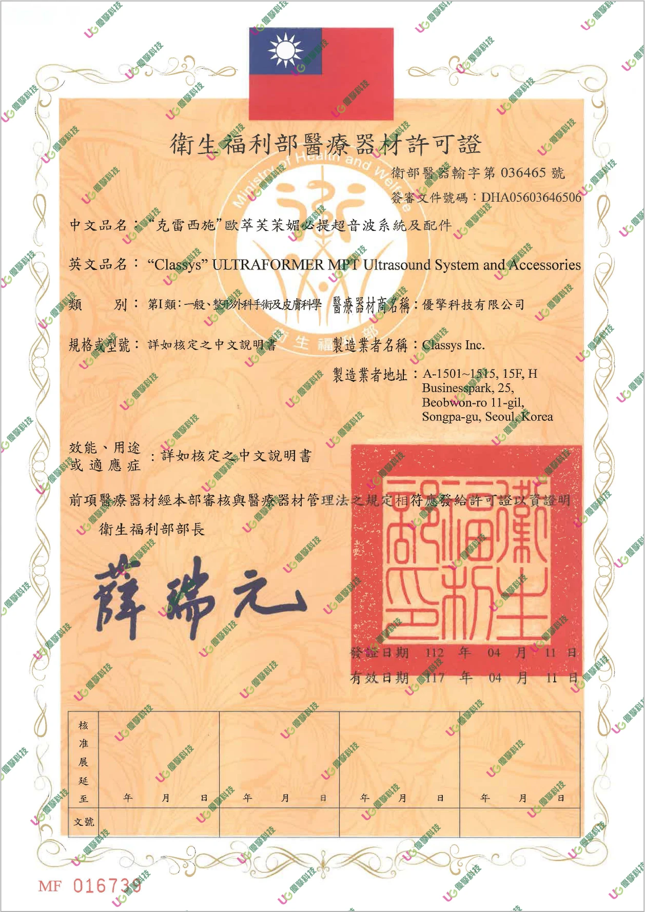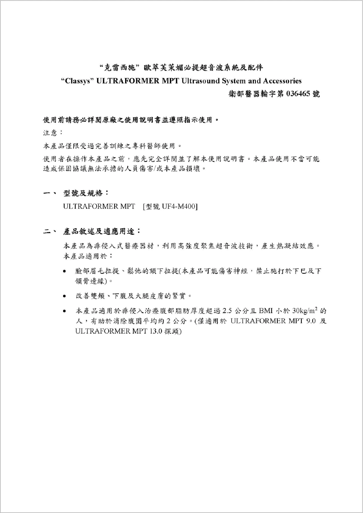 衛部醫器輸字第036465號